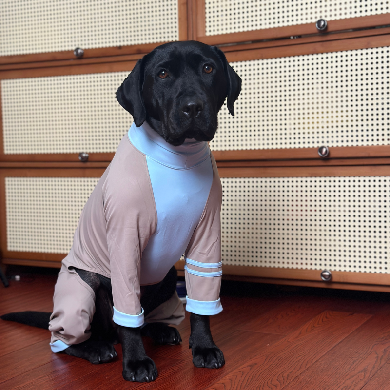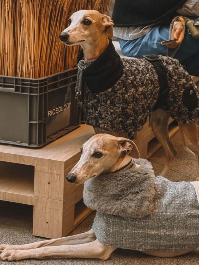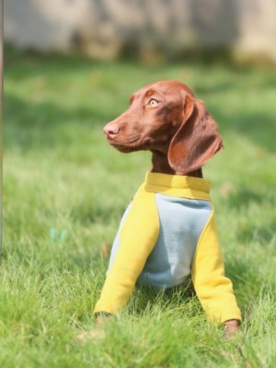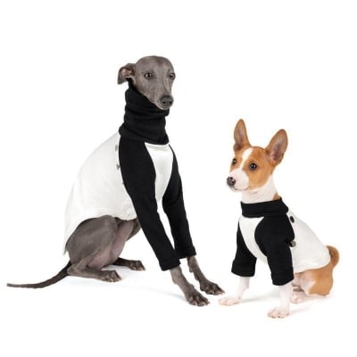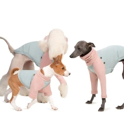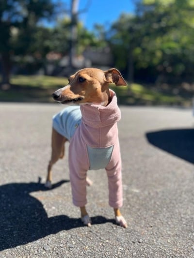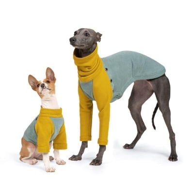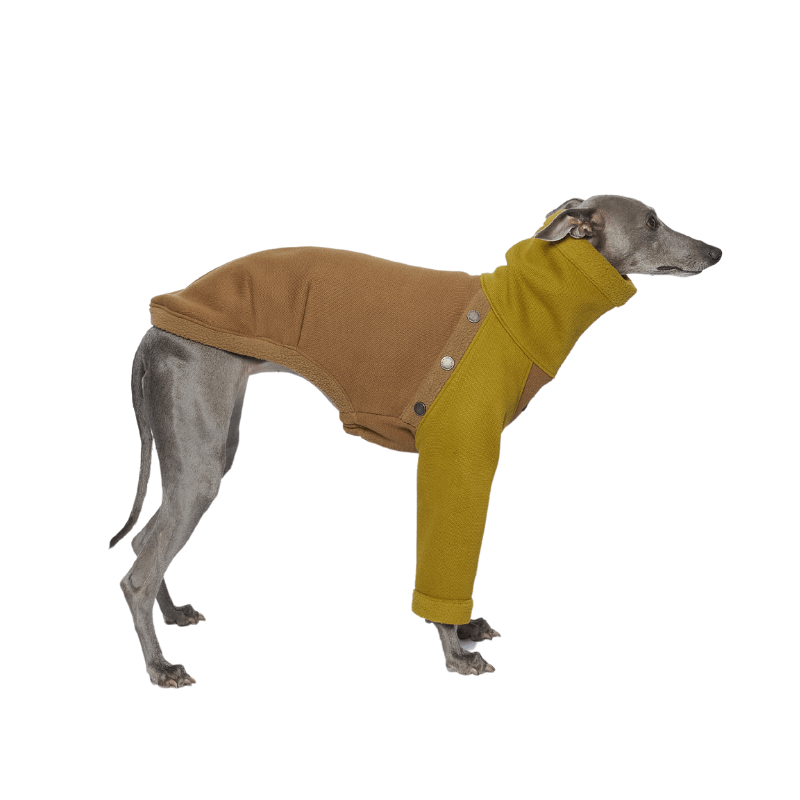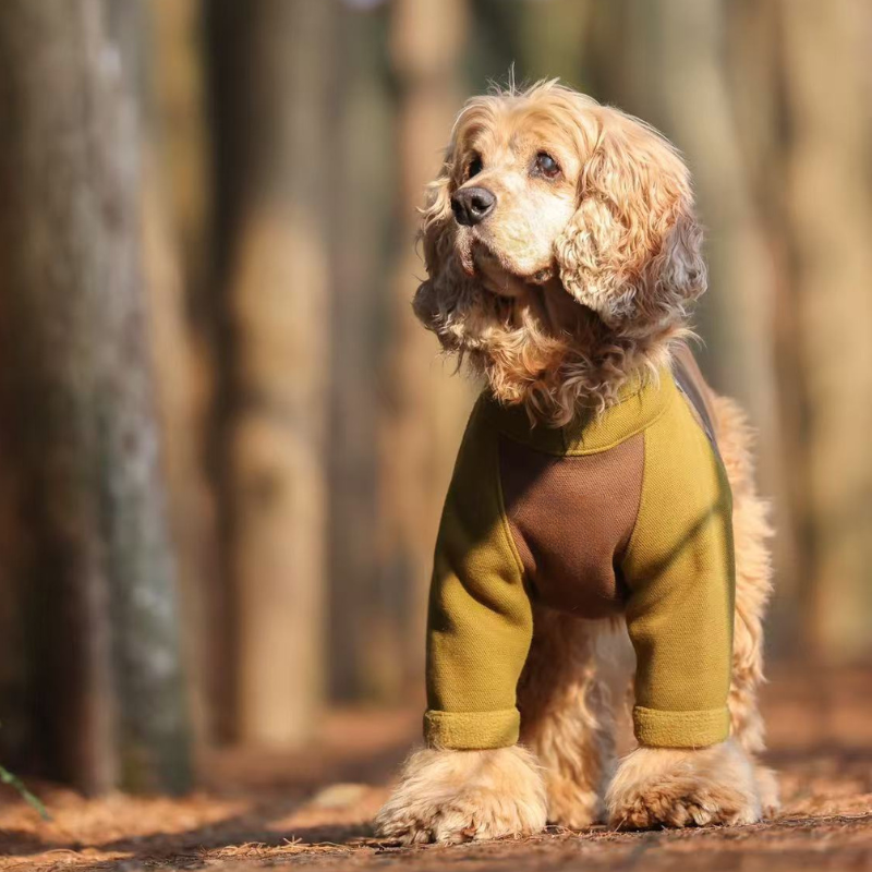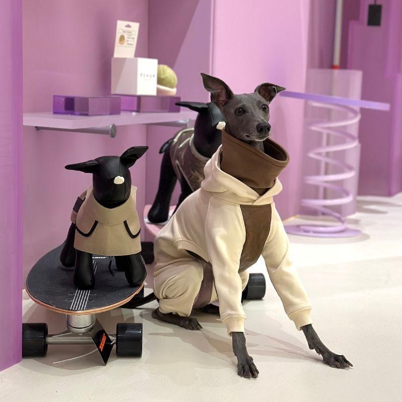 This luxurious brown vegan teddy fur jacket, adorned with chic belt details, provides remarkable warmth and an edgy style that ensures your pet stands out.